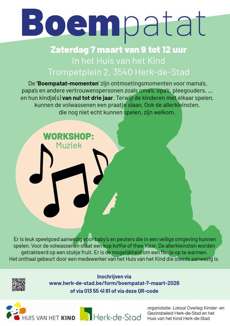Boempatat op zaterdag 7 maart van 9 tot 12 uur in het Huis van het Kind met de workshop muziek.