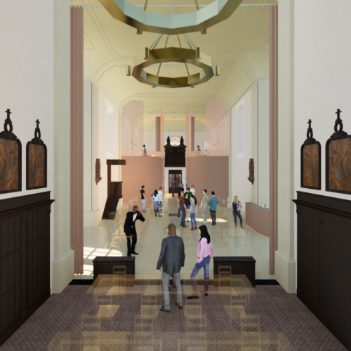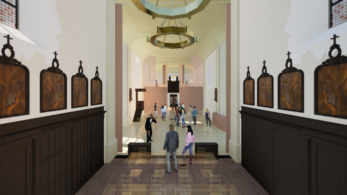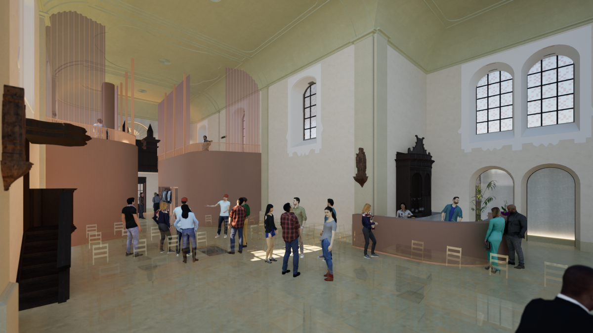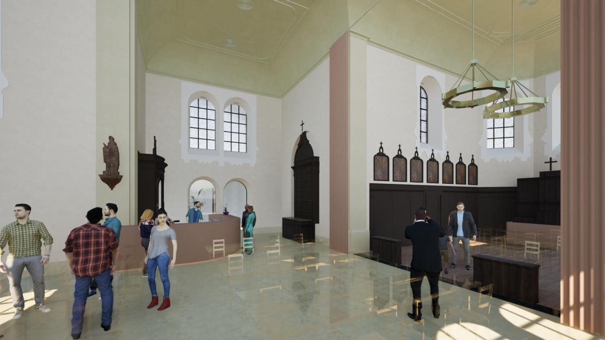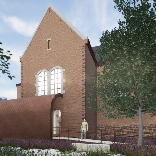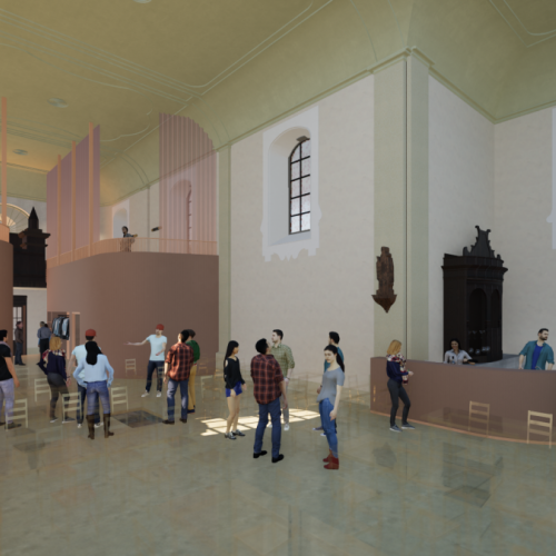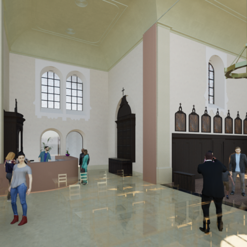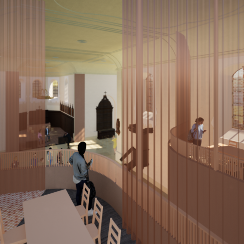 Benieuwd hoe de kerk er binnenkort uit kan zien? Hieronder vind je renderbeelden die een eerste blik geven op de plannen en de toekomstige ontmoetingsruimte.